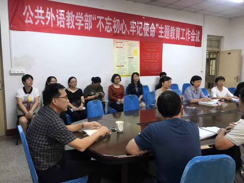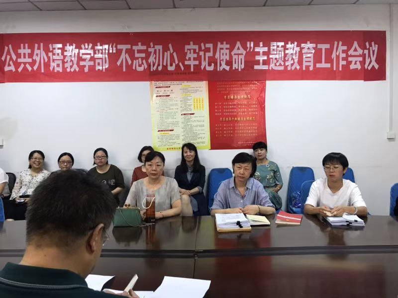 公共外语教学部华体会体育官方在线官网党支部全体党员教师参加了此次教育工作会议。根据支部会议部署,党员分领了任务,逐步推进开展“不忘初心、牢记使命”主题教育工作活动。