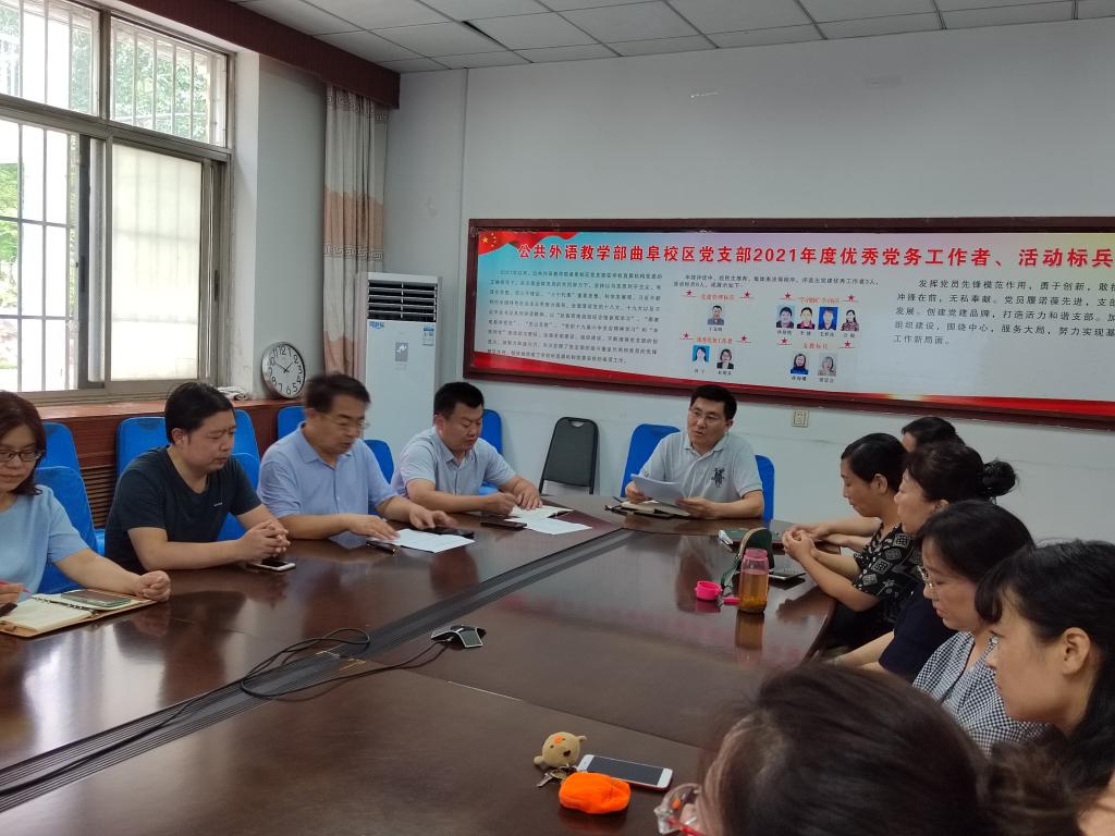 2022年6月29日下午,公共外语教学部华体会体育官方在线官网党支部书记王福祥为全体党员同志讲党课,就《中国共产党山东省第十二次代表大会报告》进行深入解读,引导党员同志进一步坚定信念、锤炼党性、主动作为、担当实干。