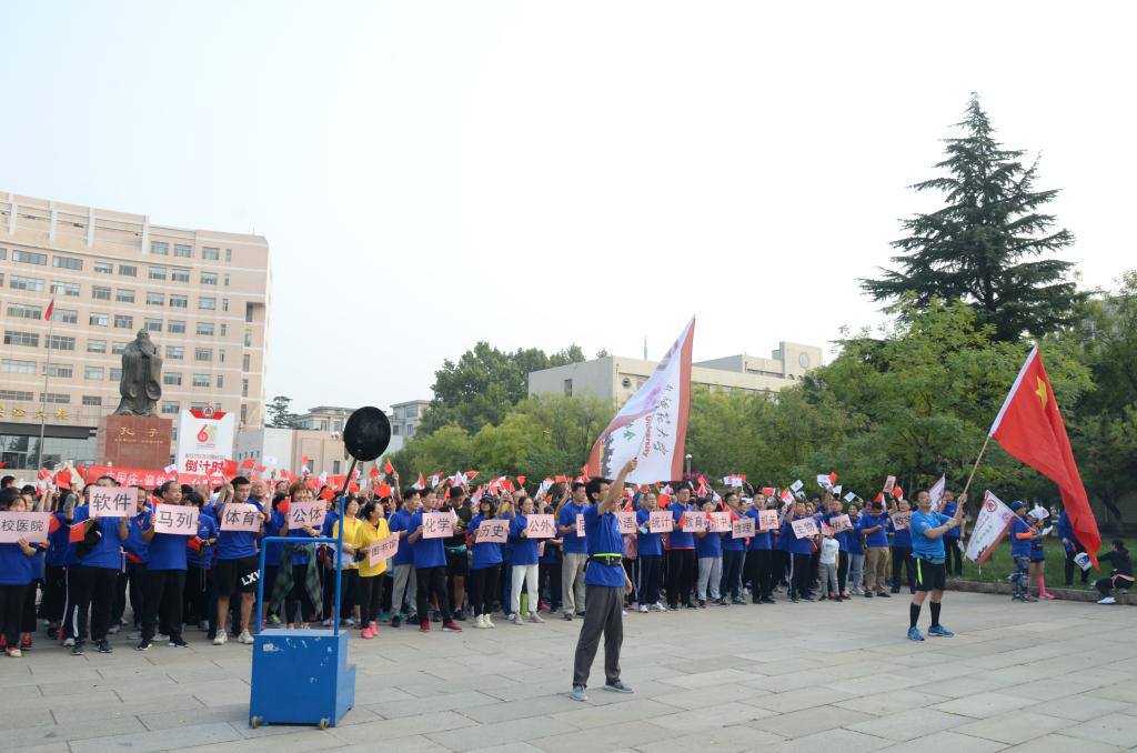 庆祝新中国成立71周年、曲阜师大建校65周年,展示曲园教工“团结、奋进、积极、创新”的精神风貌,10月1日上午,公共外语教学部多位教师参加华体会体育官方在线官网 “庆国庆·迎校庆”马拉松比赛暨环校园走活动。秉承“犁牛之子”的精神,健步行走在金秋十月阳光明媚的曲园,用活力的汗水记录曲阜师大65周年校庆的光辉历程。通过校园马拉松活动,老师们强身健体,以饱满的热情和精神投入大学英语教学,以实际行动共祝祖国华诞。