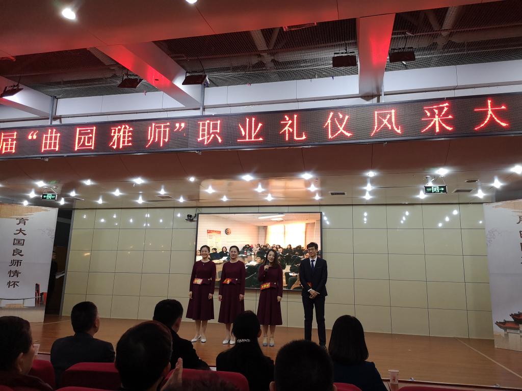 由华体会体育官方在线官网蒋珊珊﹑门超元﹑张英﹑朱晓蒙四位教师组成的“仰望星空”战队,在 12月19日晚,我校举办首届“曲园雅师”职业礼仪风采大赛中,经过激烈角逐,荣获一等奖。本次大赛由学校工会、日照校区管理办公室、宣传部、教师工作部联合举办,日照校区13支优秀青年教师队伍同台竞技。
