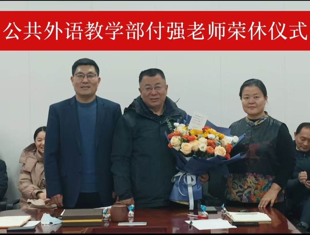 王福祥主任代表公共外语教学部全体同仁,向付强老师表达了最深切的敬意和最美好的祝福。王主任高度评价了付强老师的师德人品和专业素养,赞赏他始终保持着对教育事业的热爱与执着,用平凡而伟大的行动诠释了“学高为师,身正为范”的深刻内涵。