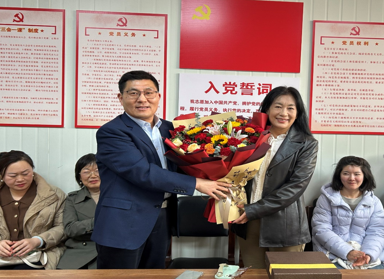 在欢声笑语中,王福祥代表公共外语教学部为王嫦娟老师送上饱含诚挚祝福的鲜花。全体工会会员准备了精美的礼品集体表达对王老师依依不舍之情和美好退休生活的深情祝愿。