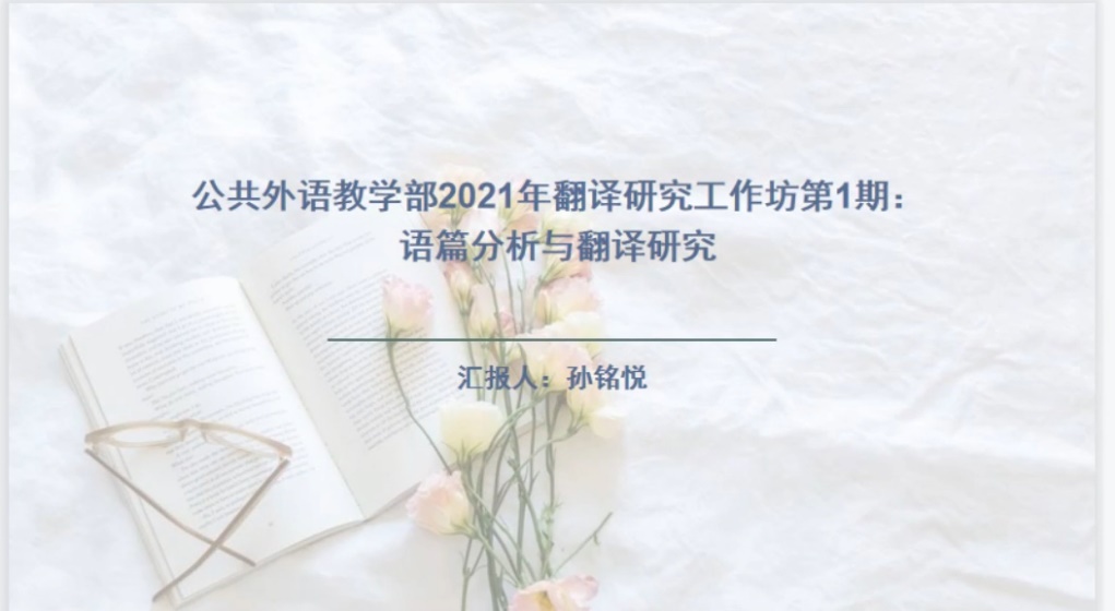 2021113日下午230,公共外语教学部在腾讯会议上举办了首次翻译与语言研究工作坊。会议在王福祥主任的简短介绍后开启,孙铭悦、张玉凌、龙磊三位老师分别就各自研究领域分享了宝贵的学术观点和研究发现,随后王福祥主任、孙伟副主任、杜庆凤老师对三位老师的报告进行了精彩点评。