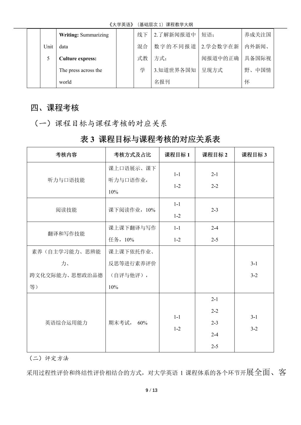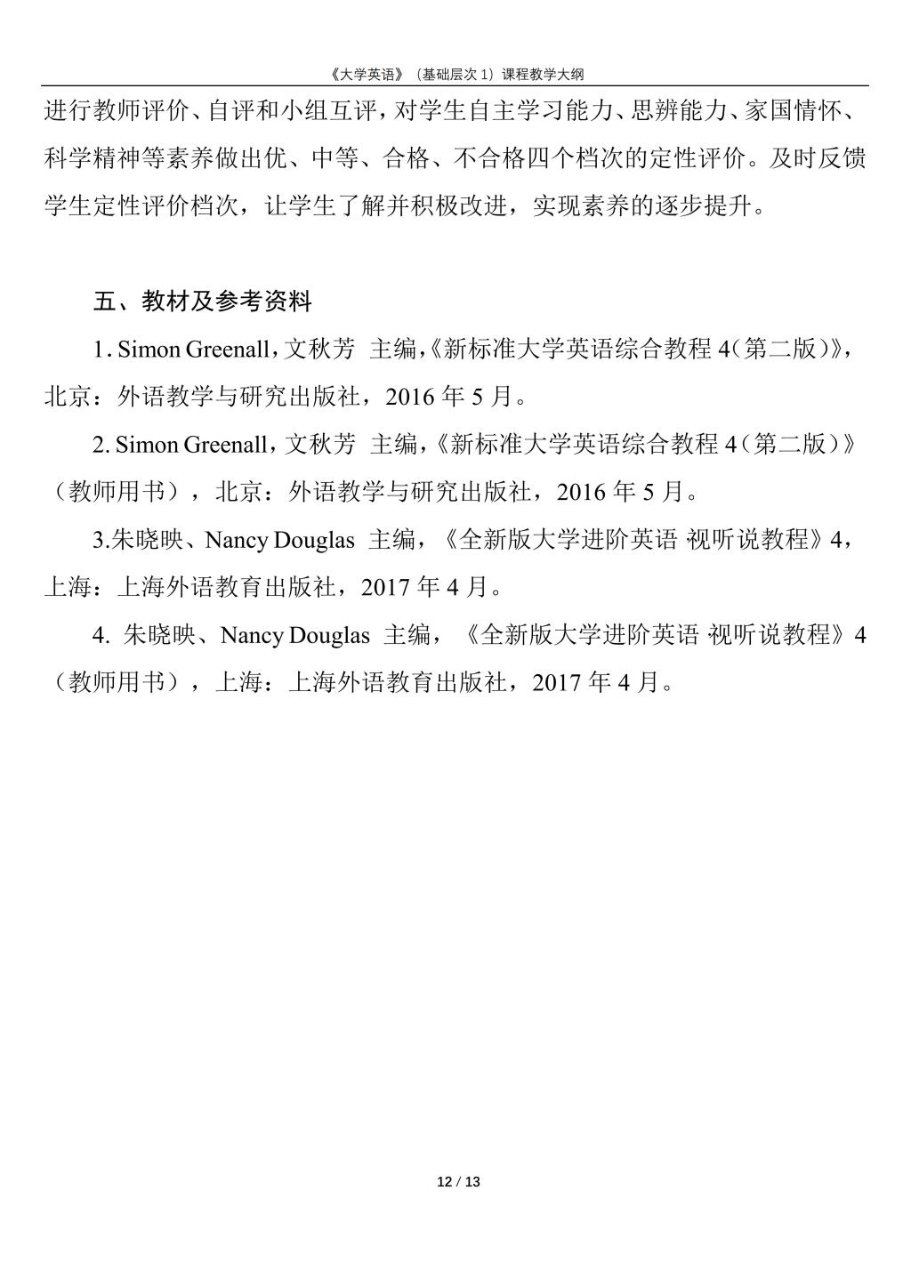 大学英语(普通类基础层次1)课程教学大纲(2022版)