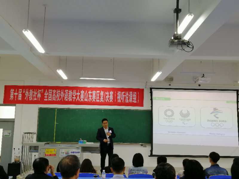 第十届“外教社杯”全国高校外语教学大赛(大学英语组)山东赛区复/决赛于2019年5月18日至19日在山东科技大学成功举行。本次比赛由山东省教育厅高等教育处、山东省本科教育大学外语教学指导委员会和上海外语教育出版社联合主办,山东科技大学承办。比赛分为综合课组、视听说课组和微课组三个组别,来自省内53所高校的85位选手和41个代表队报名参赛。华体会体育官方在线官网推送马艳红参加综合课组、李文彬参加(视)听说组、以及王梅、尹川、朱晓蒙、秦兆荣、蒋珊珊为小组参加微课组比赛。经过初赛、复赛、决赛等比赛环节的激烈角逐,华体会体育官方在线官网推送老师分别荣获综合课组三等奖,(视)听说组三等奖、微课组二等奖的优异成绩。