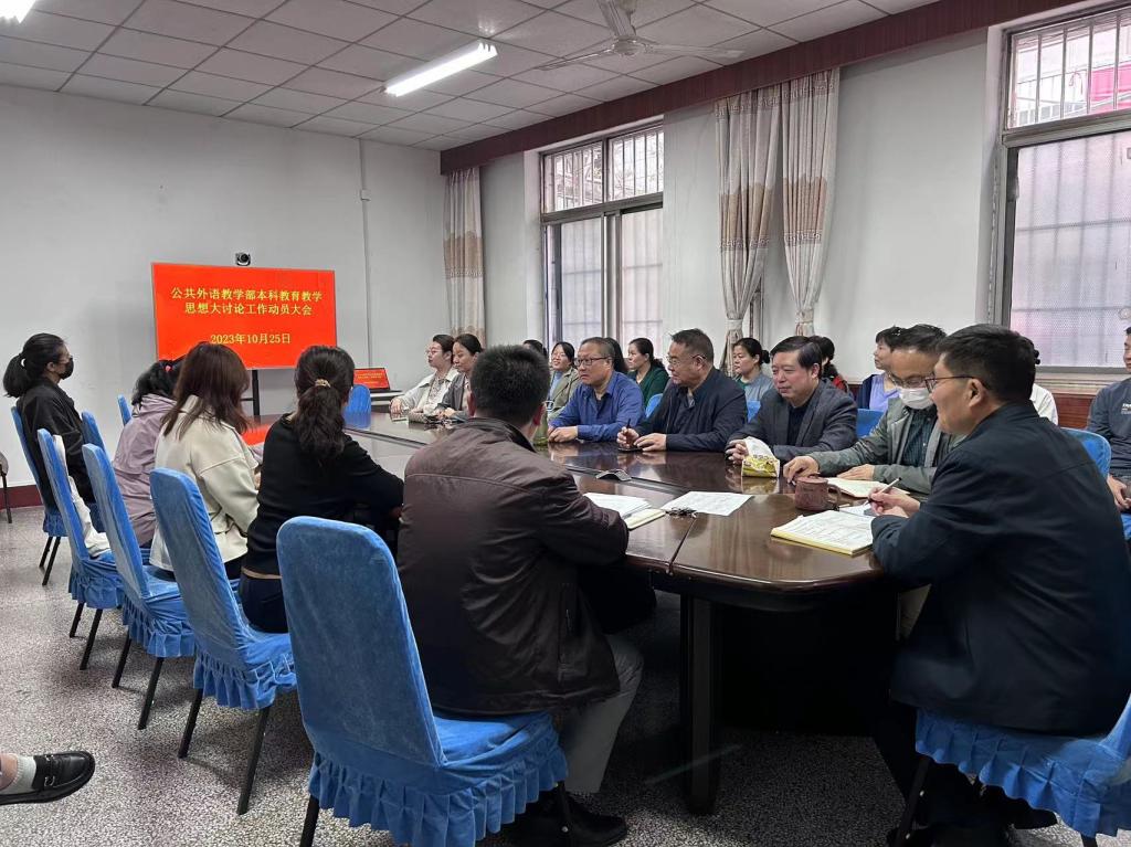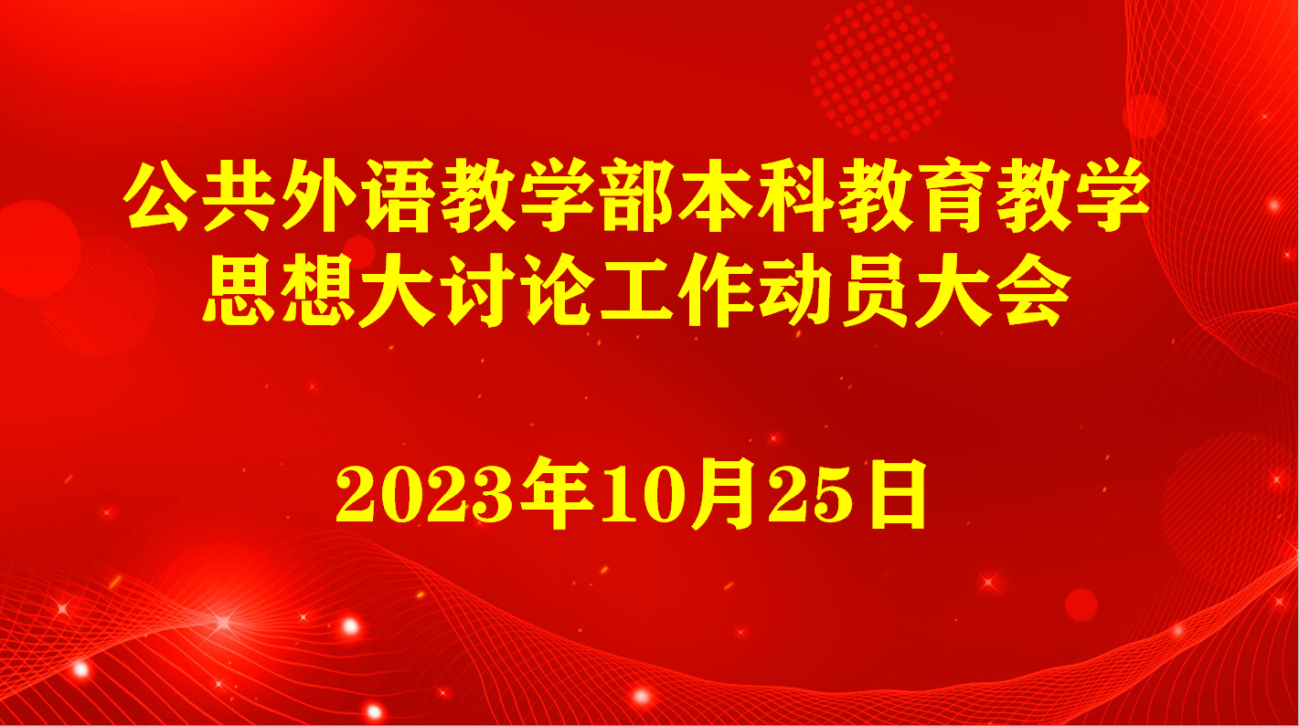 为深入贯彻党的二十大精神、全国教育大会精神、习近平总书记在中共中央政治局第五次集体学习时的重要讲话精神,全面落实中共中央国务院《深化新时代教育评价改革总体方案》和教育部《关于深化本科教育教学改革全面提高人才培养质量的意见》等文件要求,落实立德树人根本任务,推动深化本科教育教学改革,全面提升本科人才培养质量,高质量完成本科教育教学审核评估,10月25日,公共外语教学部组织开展2023年本科教育教学思想大讨论动员会。领导班子成员公共外语教学部主任王福祥;副主任孙伟、代尊峰、王显明;以及全体教师参加会议。