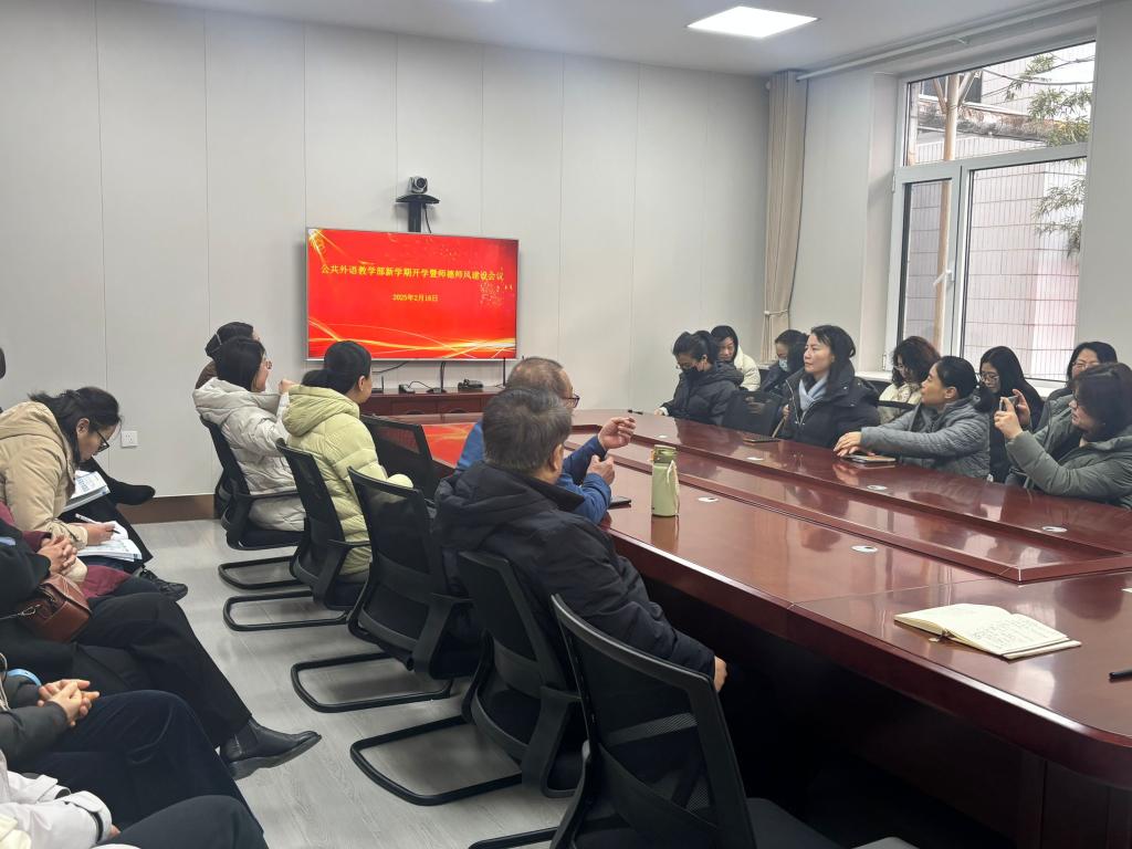 2月16日,公共外语教学部召开2024-2025学年春季新学期开学暨师德师风建设会议,对新学期教学、科研等各方面重点工作进行总体部署与安排并深入开展师德师风专题教育活动。会议由公共外语教学部主任王福祥主持,两校区全体教职工参加会议。