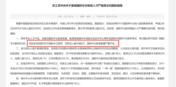 在这个全球化的时代,中文的影响力日益扩大,国际中文教师的需求也随之激增。2023年的一份两会提案中提到,目前全球对于国际中文教师的需求缺口达到了500万,但持证人数不足6万。这意味着,如果你选择成为一名国际中文教师,你将站在一个充满无限可能的舞台上,用自己的知识和热情,点亮他人的世界。